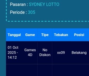 Prediksi Sydney Lotto Kamis, 02-10-2025 | |