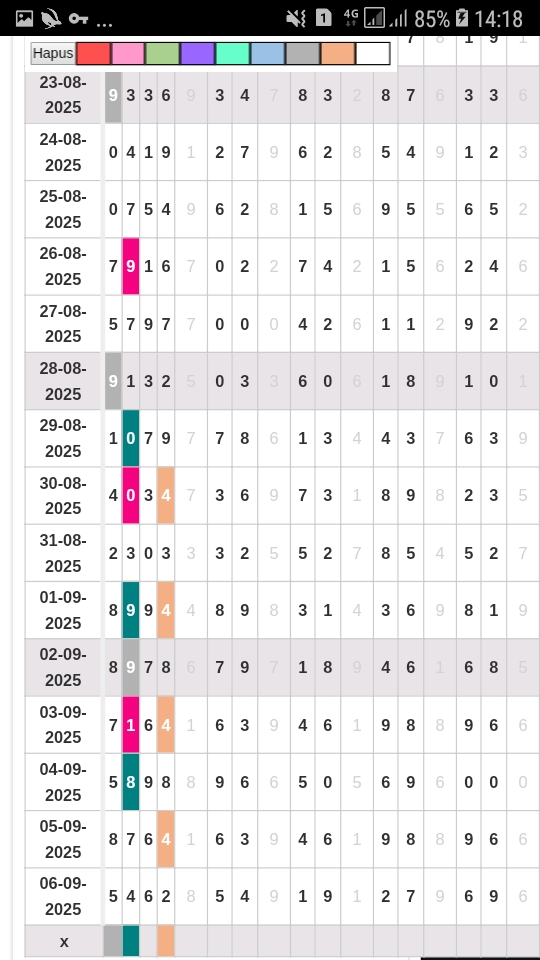 Rumus Kontrol 4 berdasarkan kepala harian | 1236780 1456790 |