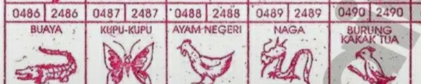 Rumus Angka Mati berdasarkan kepala harian | 04 05 06 07 08 09 10 15 16 17 18 21 26 28 29 30 31 32 41 42 43 52 53 54 64 65 72 73 75 76 83 84 86 93 94 95 96 97 98 |