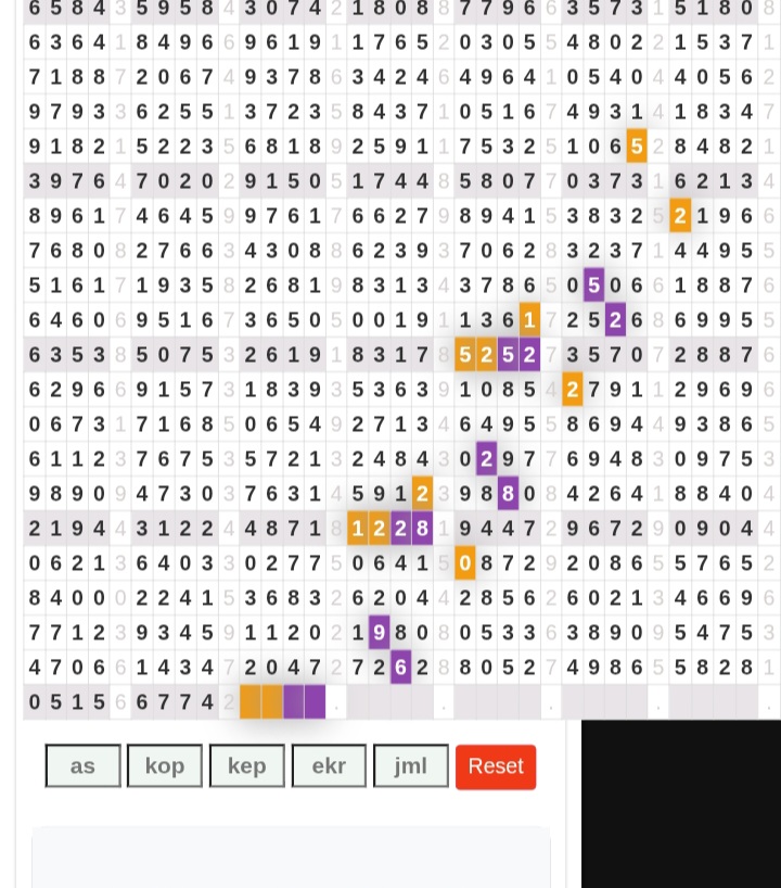 Rumus Angka Mati berdasarkan kepala harian | 05 06 08 09 16 17 19 20 21 26 27 28 29 30 31 32 37 38 39 40 41 43 48 49 51 52 54 59 63 64 65 74 75 76 85 86 87 97 98 |