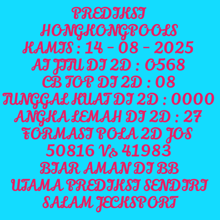 Prediksi HK Rabu, 03-09-2025 Merupakan Prediksi Otomatis yang menggabungkan Metode Kalender Togel Dengan LN Generator yang akurasi prediksinya sudah kita ketahui bersama. Jadi harap Maklum Jika kadang meleset Prediksi HK kita. Jadikan ini sebagai perbandingan saja dan tetap Utamakan karya sendiri