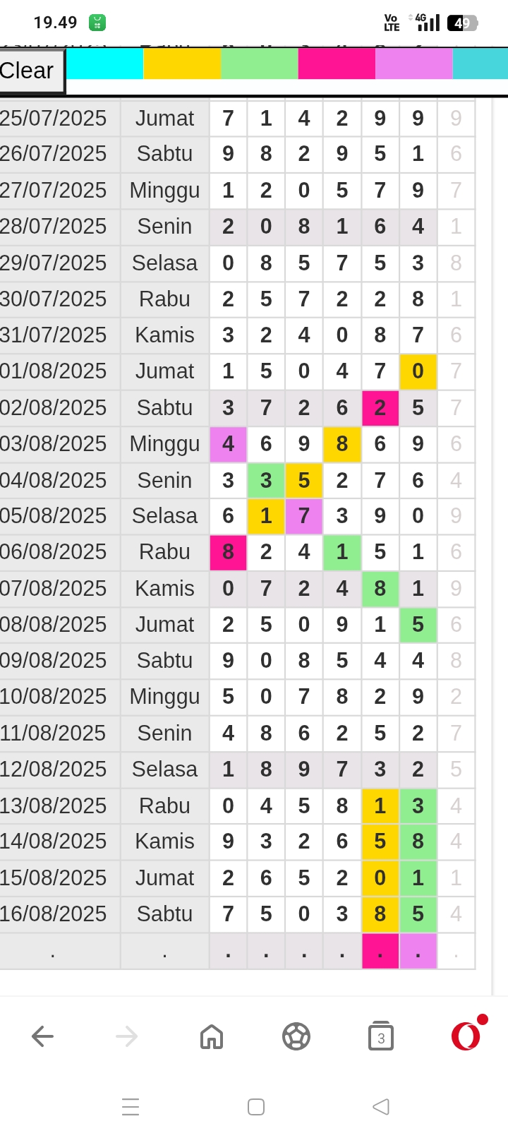 Rumus Angka Mati berdasarkan kepala harian | 07 08 09 10 18 19 20 21 29 31 32 40 42 43 49 50 51 53 60 61 62 63 64 65 71 72 73 74 75 76 82 83 84 85 87 93 95 96 98 |
