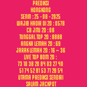 Prediksi HK Kamis, 02-10-2025 Merupakan Prediksi Otomatis yang menggabungkan Metode Kalender Togel Dengan LN Generator yang akurasi prediksinya sudah kita ketahui bersama. Jadi harap Maklum Jika kadang meleset Prediksi HK kita. Jadikan ini sebagai perbandingan saja dan tetap Utamakan karya sendiri