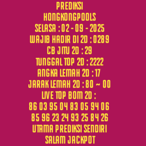 Prediksi HK Rabu, 03-09-2025 Merupakan Prediksi Otomatis yang menggabungkan Metode Kalender Togel Dengan LN Generator yang akurasi prediksinya sudah kita ketahui bersama. Jadi harap Maklum Jika kadang meleset Prediksi HK kita. Jadikan ini sebagai perbandingan saja dan tetap Utamakan karya sendiri