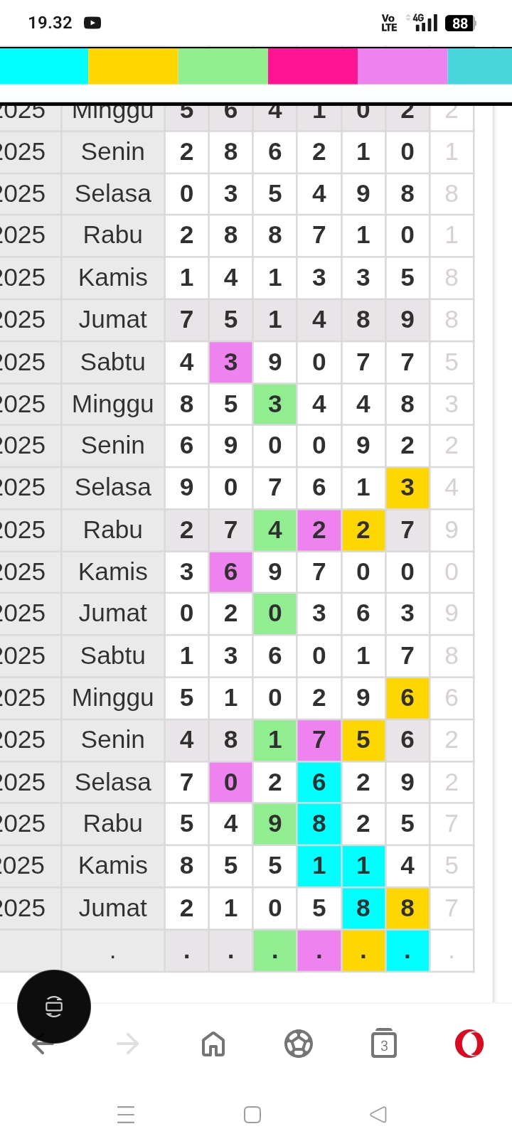 Rumus Angka Mati berdasarkan kepala harian | 04 05 06 07 08 09 10 15 16 17 18 21 26 28 29 30 31 32 41 42 43 52 53 54 64 65 72 73 75 76 83 84 86 93 94 95 96 97 98 |