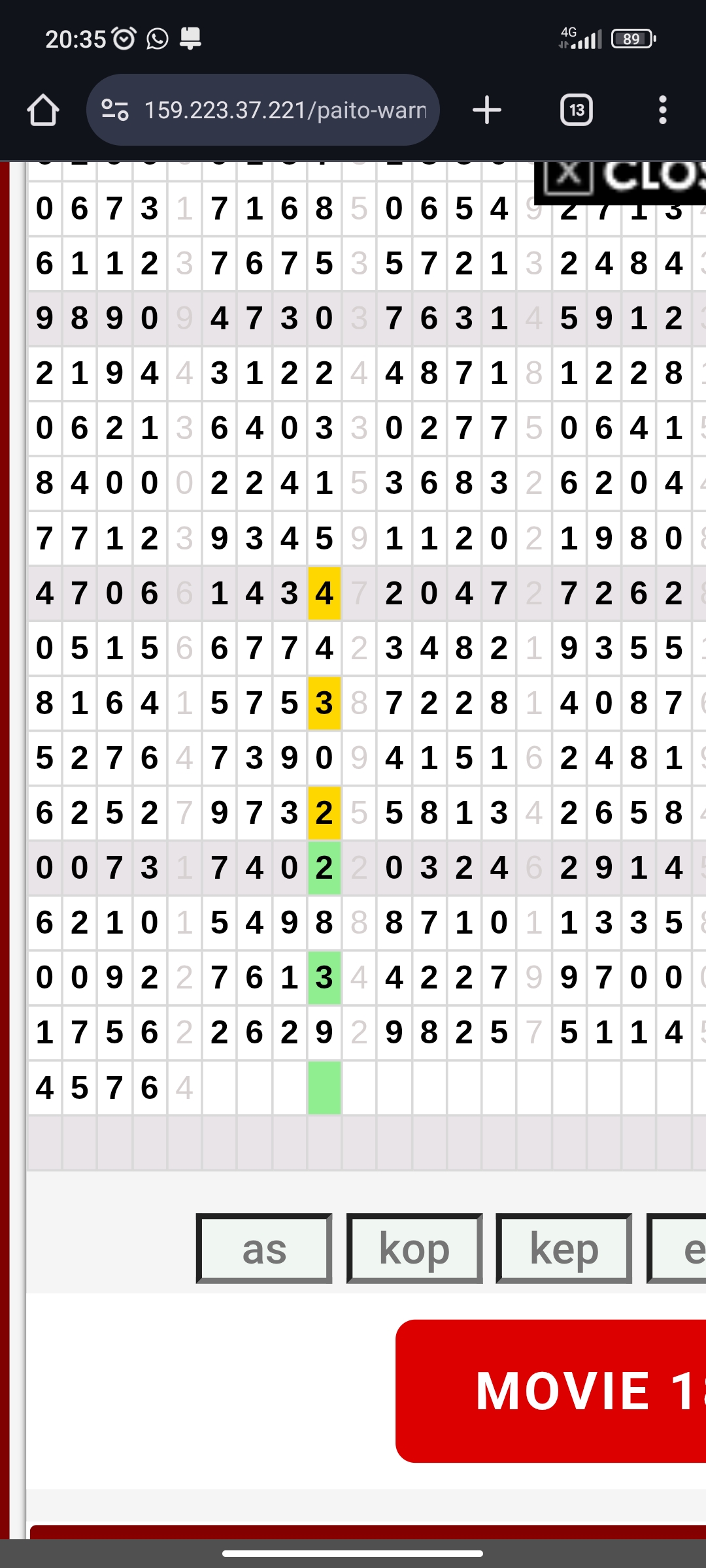 Rumus Angka Mati berdasarkan kepala harian | 04 05 06 07 08 09 10 15 16 17 18 19 21 26 27 28 29 30 32 37 39 41 42 43 52 53 54 63 64 65 75 76 83 84 86 87 94 95 97 |