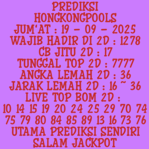 Prediksi HK Jumat, 03-10-2025 Merupakan Prediksi Otomatis yang menggabungkan Metode Kalender Togel Dengan LN Generator yang akurasi prediksinya sudah kita ketahui bersama. Jadi harap Maklum Jika kadang meleset Prediksi HK kita. Jadikan ini sebagai perbandingan saja dan tetap Utamakan karya sendiri