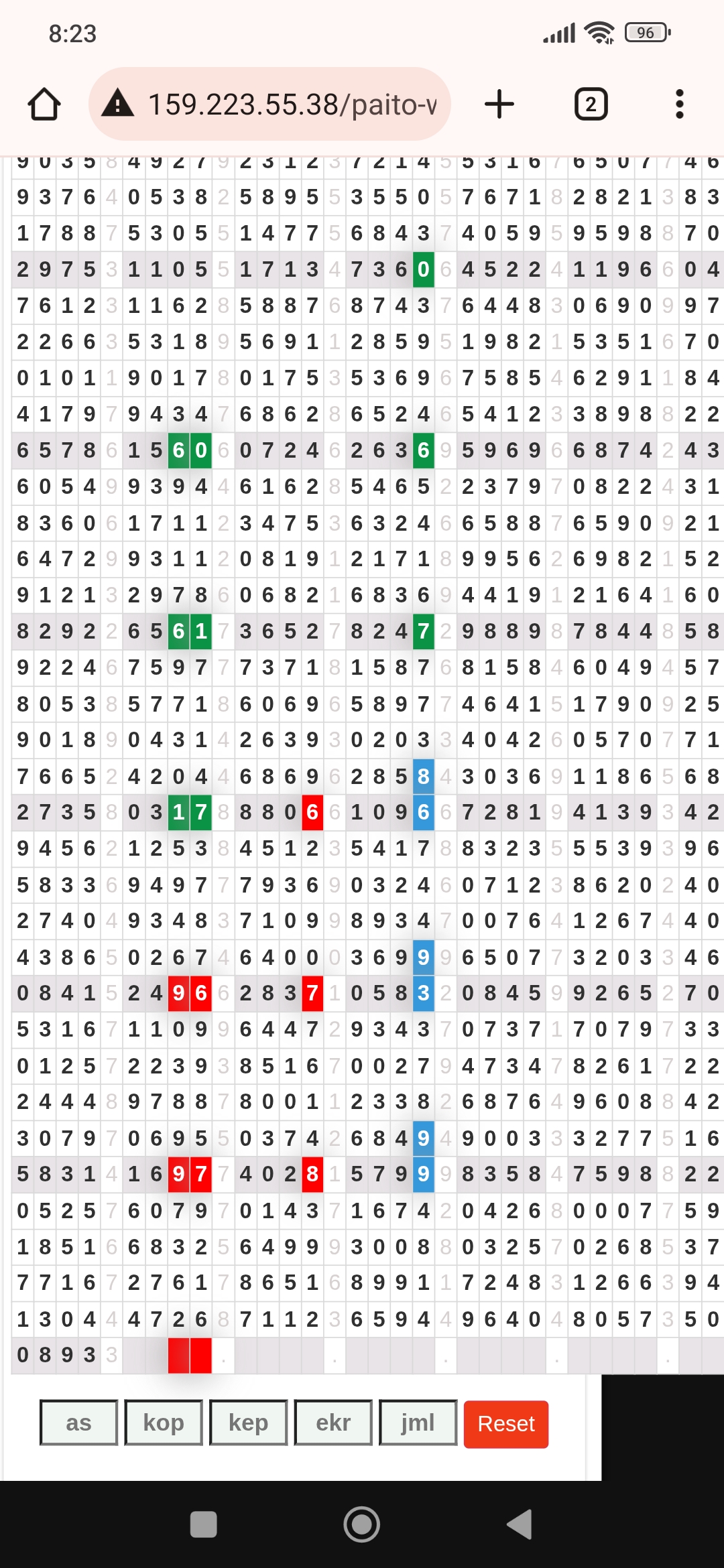 Rumus Angka Mati berdasarkan kepala harian | 04 05 06 07 08 09 10 15 16 17 18 21 26 28 29 30 31 32 41 42 43 52 53 54 64 65 72 73 75 76 83 84 86 93 94 95 96 97 98 |