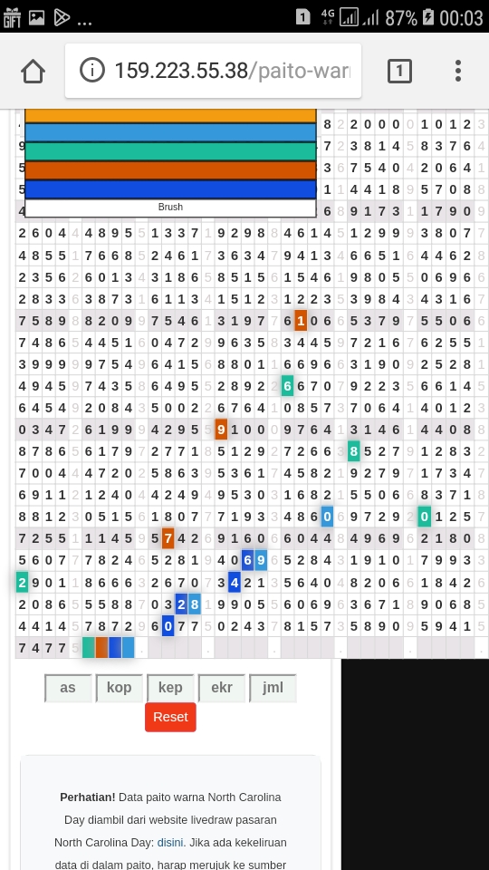 Prediksi North Carolina Day Sabtu, 04-10-2025 Merupakan Prediksi Otomatis yang menggabungkan Metode Kalender Togel Dengan LN Generator yang akurasi prediksinya sudah kita ketahui bersama. Jadi harap Maklum Jika kadang meleset Prediksi North Carolina Day kita. Jadikan ini sebagai perbandingan saja dan tetap Utamakan karya sendiri