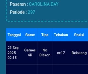 Prediksi North Carolina Day Rabu, 01-10-2025 | |