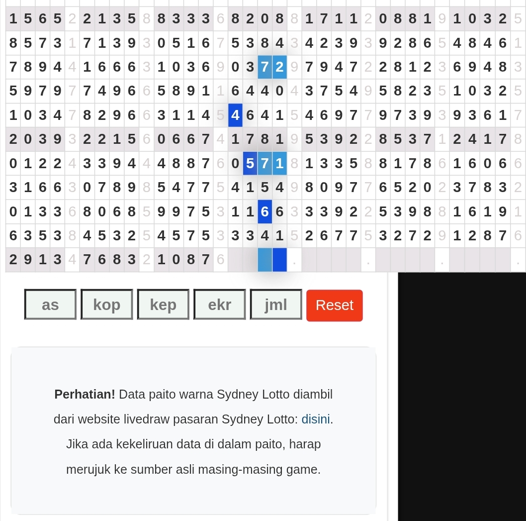 Prediksi Sydney Lotto Kamis, 02-10-2025 Merupakan Prediksi Otomatis yang menggabungkan Metode Kalender Togel Dengan LN Generator yang akurasi prediksinya sudah kita ketahui bersama. Jadi harap Maklum Jika kadang meleset Prediksi Sydney Lotto kita. Jadikan ini sebagai perbandingan saja dan tetap Utamakan karya sendiri