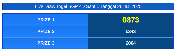 Prediksi Singapore Rabu, 24-09-2025 Merupakan Prediksi Otomatis yang menggabungkan Metode Kalender Togel Dengan LN Generator yang akurasi prediksinya sudah kita ketahui bersama. Jadi harap Maklum Jika kadang meleset Prediksi Singapore kita. Jadikan ini sebagai perbandingan saja dan tetap Utamakan karya sendiri