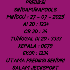 Prediksi Singapore Minggu, 28-09-2025 Merupakan Prediksi Otomatis yang menggabungkan Metode Kalender Togel Dengan LN Generator yang akurasi prediksinya sudah kita ketahui bersama. Jadi harap Maklum Jika kadang meleset Prediksi Singapore kita. Jadikan ini sebagai perbandingan saja dan tetap Utamakan karya sendiri