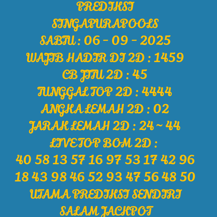 PREDIKSI SINGAPORESABTU 06-SEPTEMBER-2025