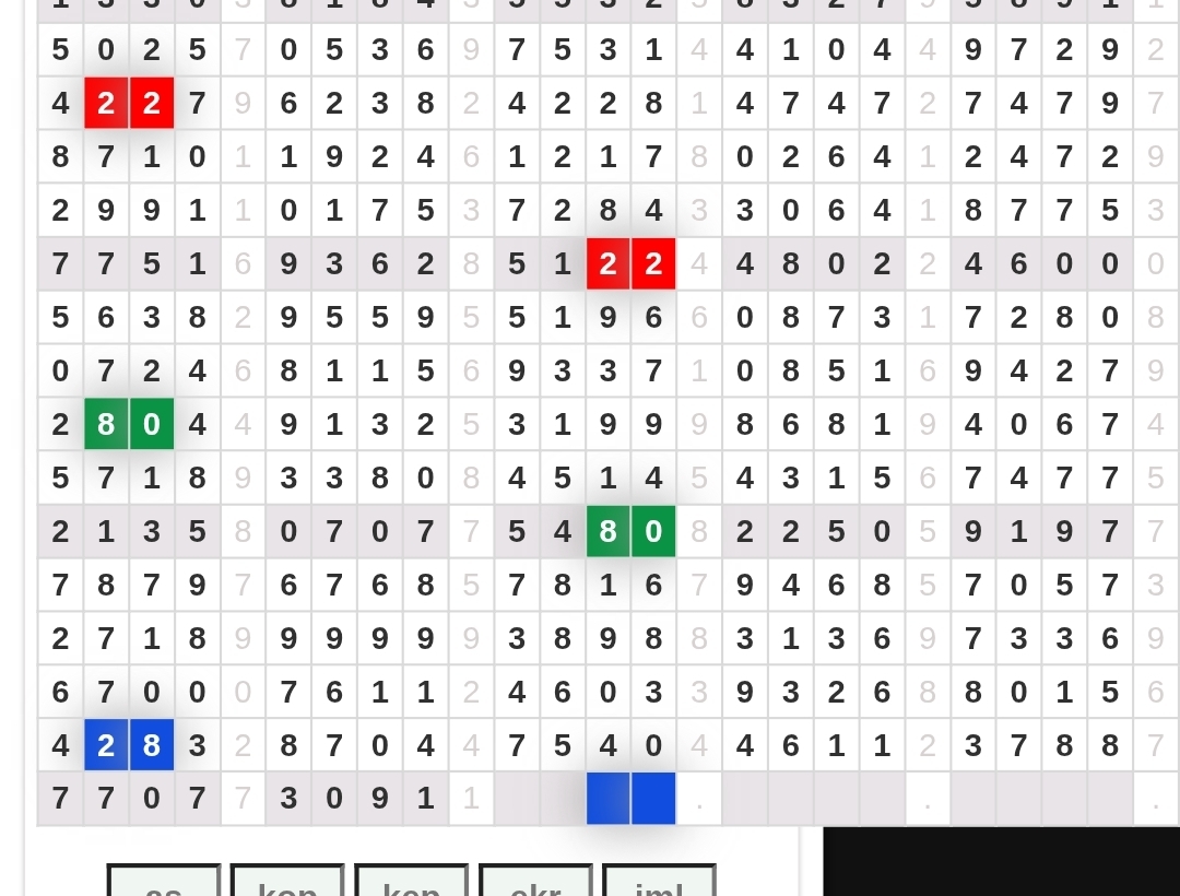 Rumus Angka Mati berdasarkan kepala harian | 07 08 09 10 18 19 20 21 31 32 38 39 40 42 49 50 51 52 53 54 59 60 61 62 63 64 65 71 72 73 74 76 82 84 85 87 96 97 98 |