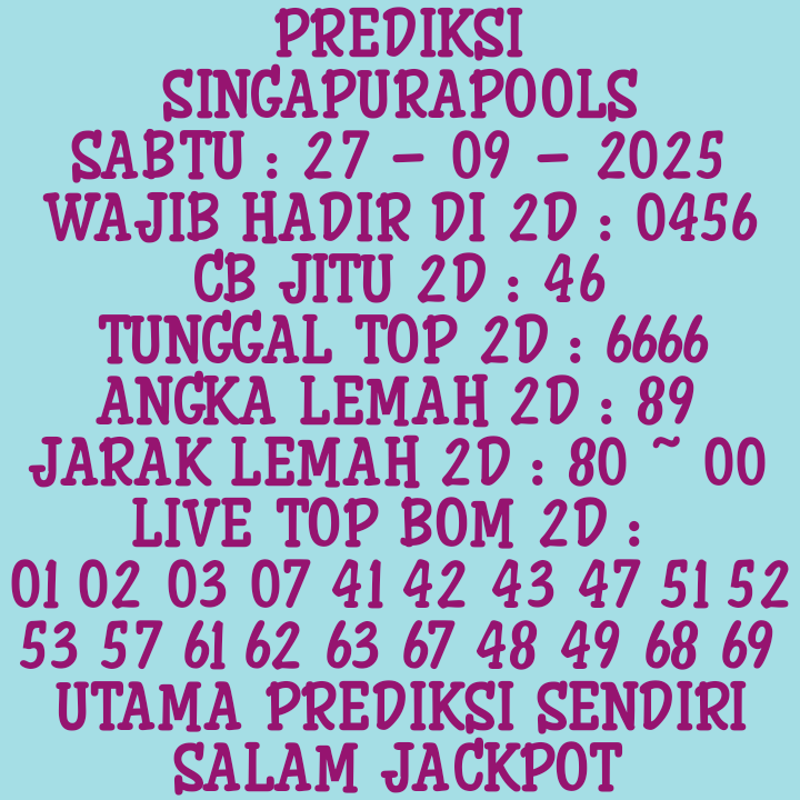 Prediksi Singapore Rabu, 01-10-2025 | |