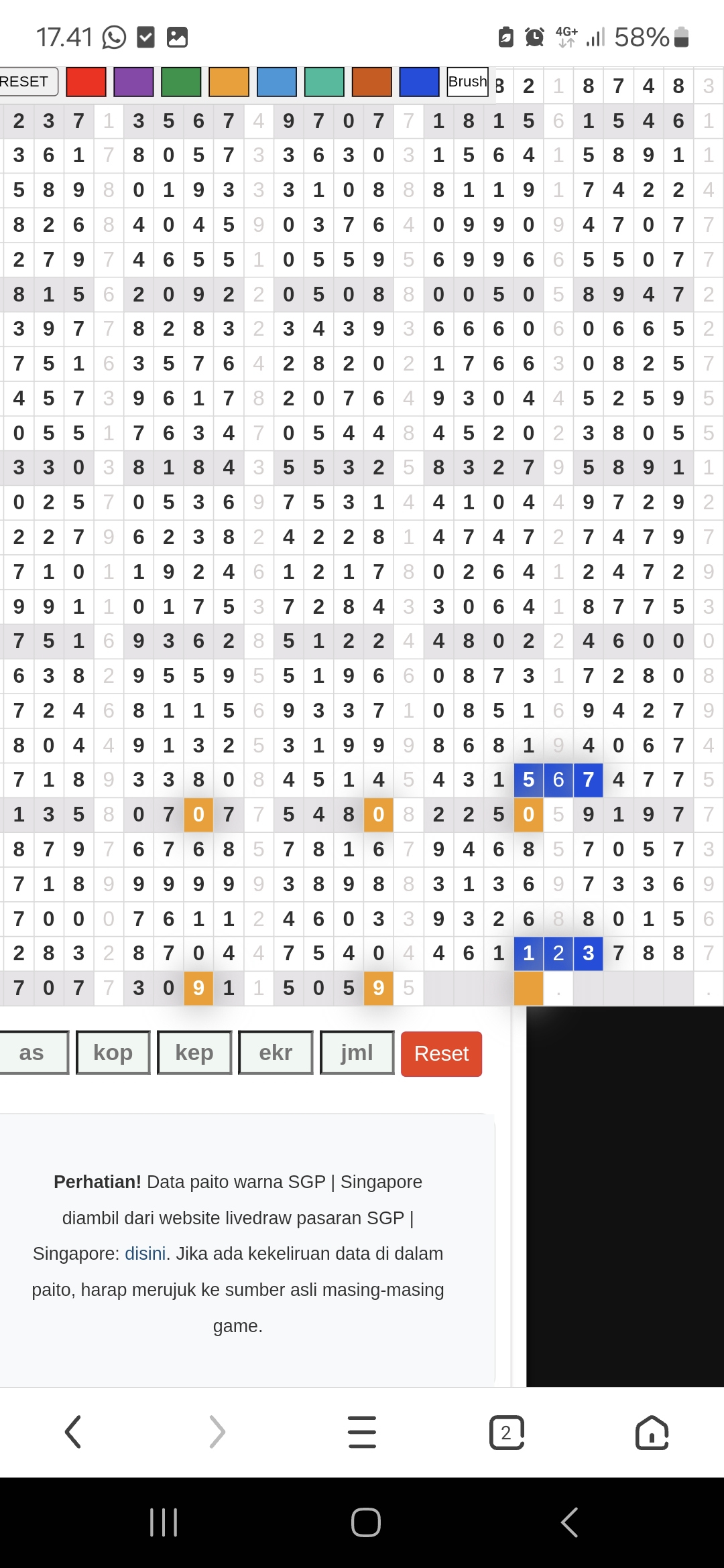 Rumus Angka Mati berdasarkan kepala harian | 07 08 09 10 18 19 20 21 31 32 38 39 40 42 49 50 51 52 53 54 59 60 61 62 63 64 65 71 72 73 74 76 82 84 85 87 96 97 98 |