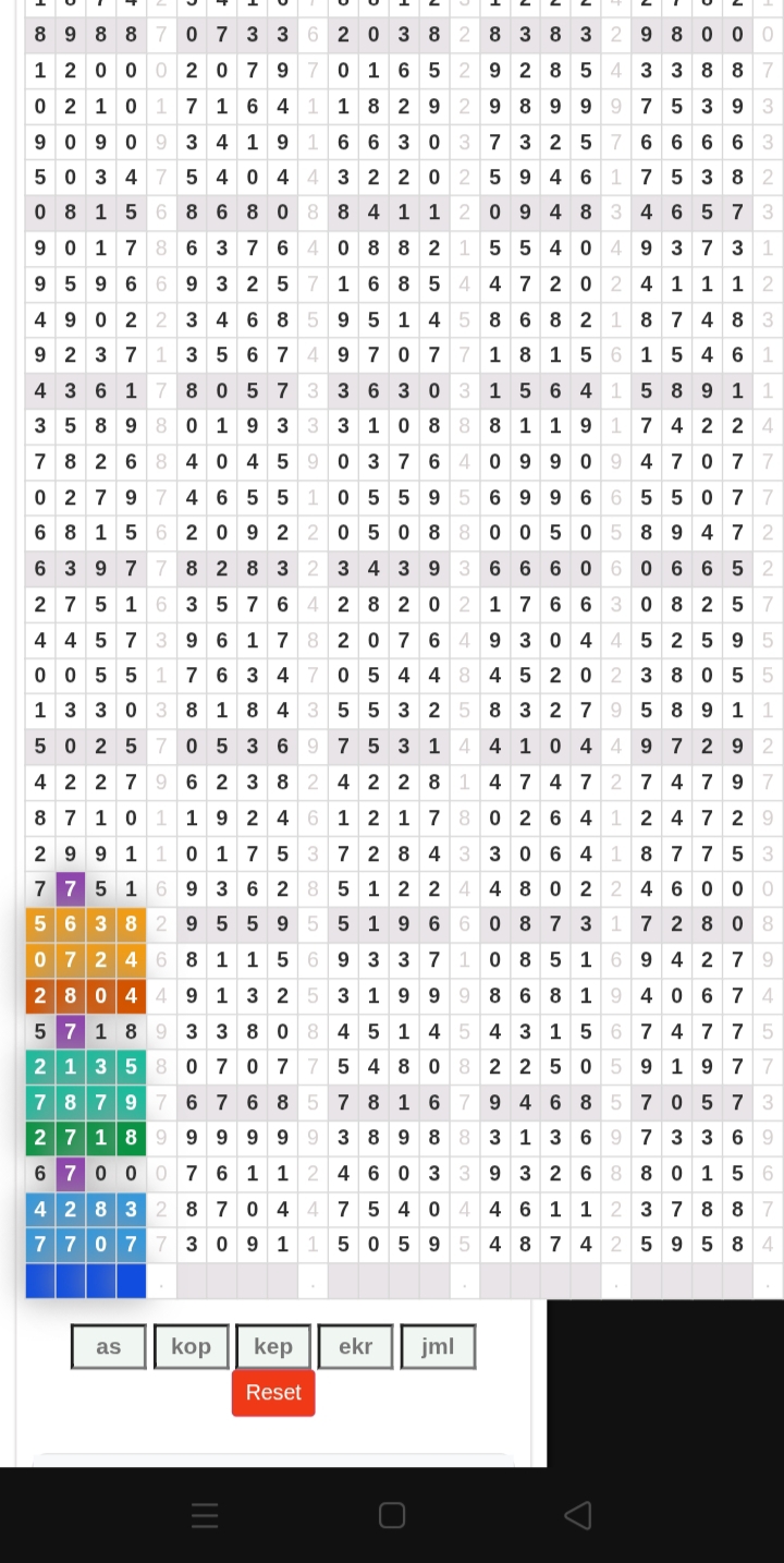 Rumus Angka Mati berdasarkan kepala harian04 05 06 07 08 09 10 15 16 17 18 21 26 28 29 30 31 32 41 42 43 52 53 54 64 65 72 73 75 76 83 84 86 93 94 95 96 97 98