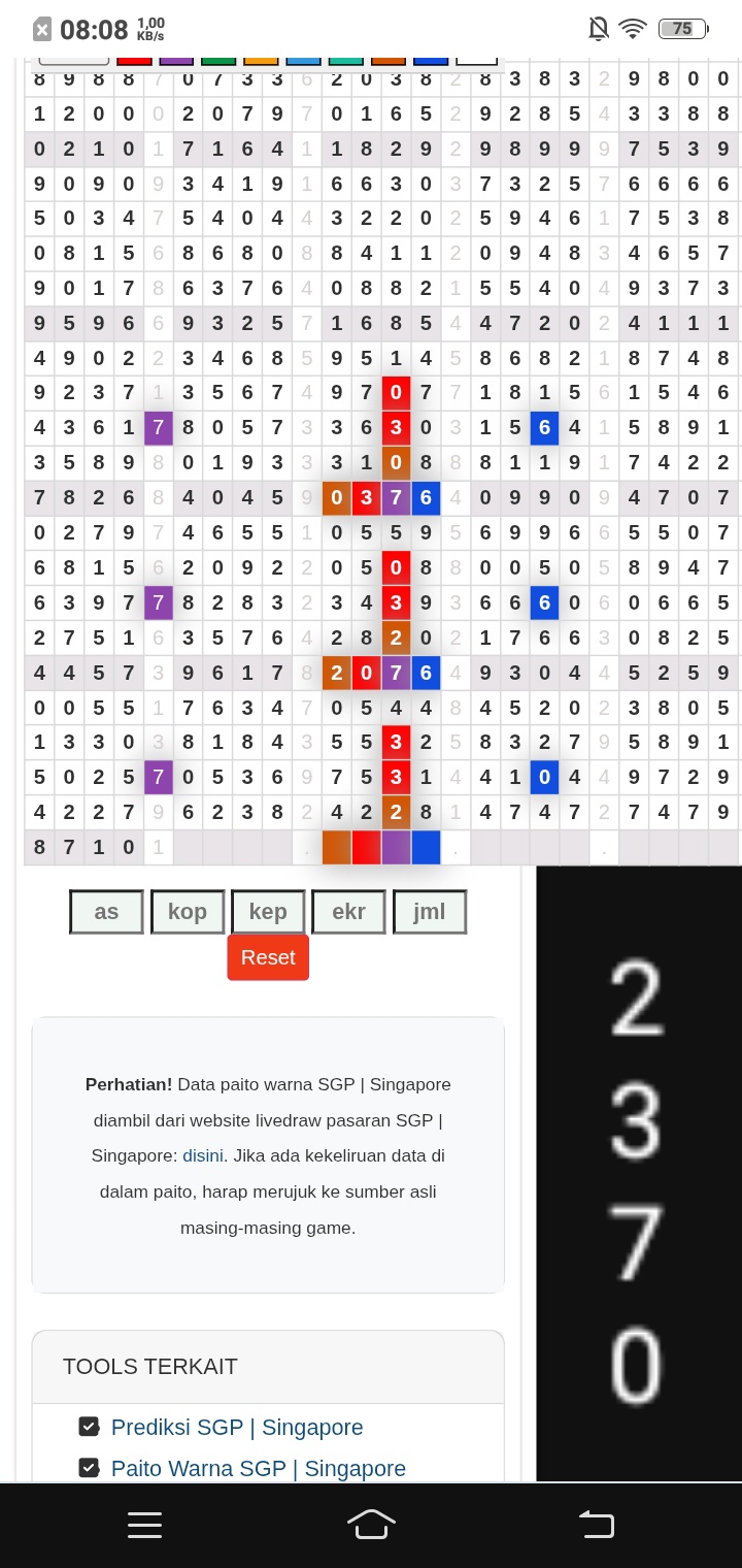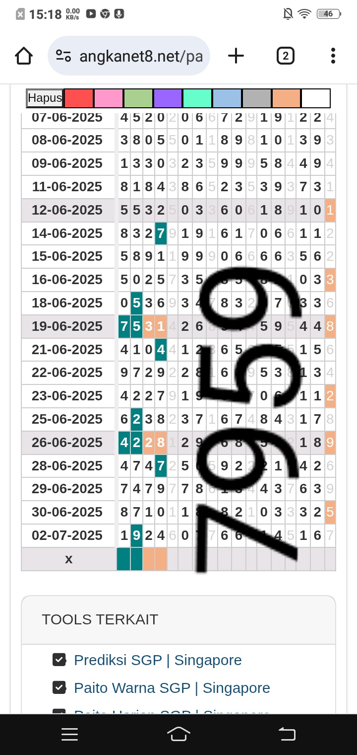 Prediksi Singapore Rabu, 01-10-2025 Merupakan Prediksi Otomatis yang menggabungkan Metode Kalender Togel Dengan LN Generator yang akurasi prediksinya sudah kita ketahui bersama. Jadi harap Maklum Jika kadang meleset Prediksi Singapore kita. Jadikan ini sebagai perbandingan saja dan tetap Utamakan karya sendiri