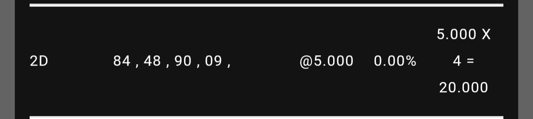 4D, 3D dan 2D 2D Belakang 48 2,000 0.00 0 2,000 200,000