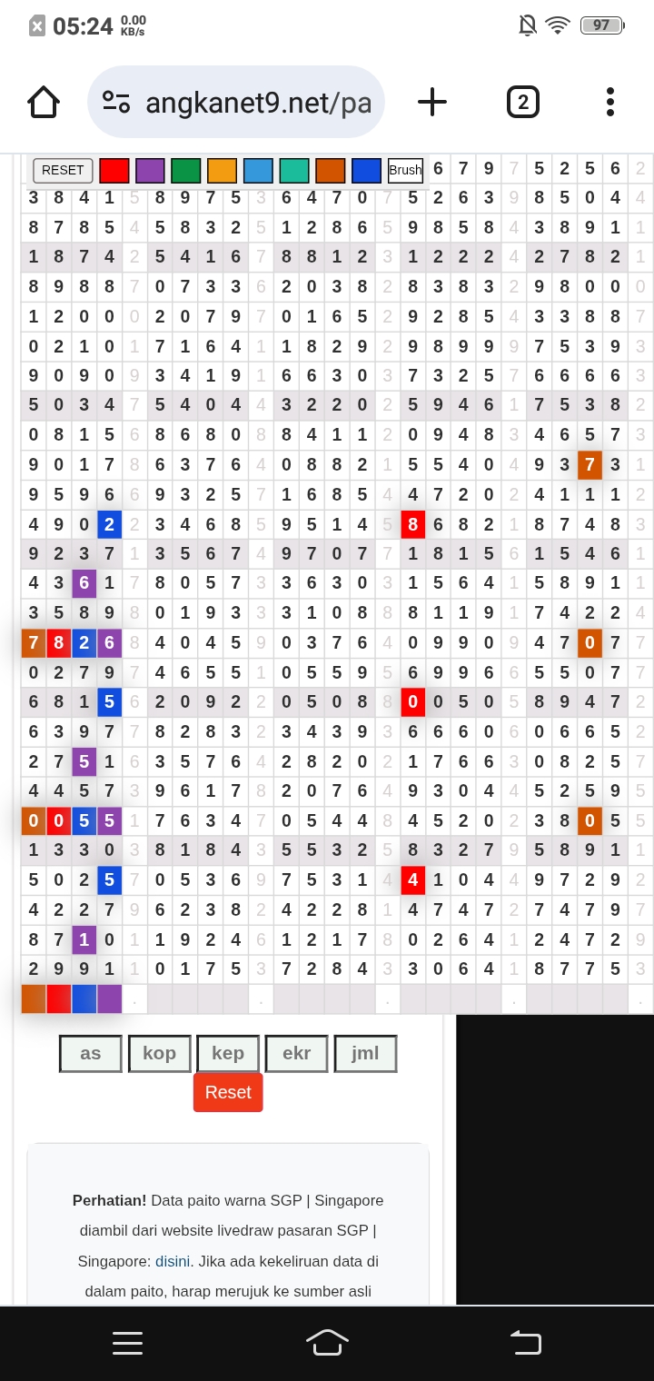Rumus Angka Mati berdasarkan kepala harian | 07 08 09 10 18 19 20 21 31 32 38 39 40 42 49 50 51 52 53 54 59 60 61 62 63 64 65 71 72 73 74 76 82 84 85 87 96 97 98 |
