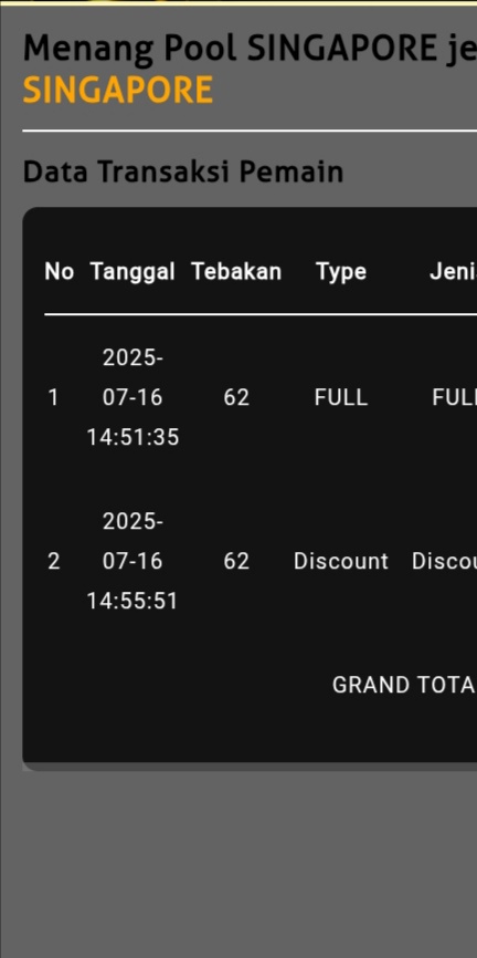 Prediksi Singapore Kamis, 02-10-2025 Merupakan Prediksi Otomatis yang menggabungkan Metode Kalender Togel Dengan LN Generator yang akurasi prediksinya sudah kita ketahui bersama. Jadi harap Maklum Jika kadang meleset Prediksi Singapore kita. Jadikan ini sebagai perbandingan saja dan tetap Utamakan karya sendiri
