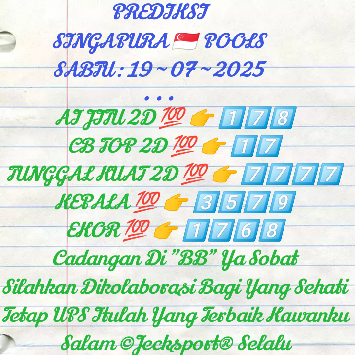PREDIKSI SINGAPORESABTU 19-JULI-2025