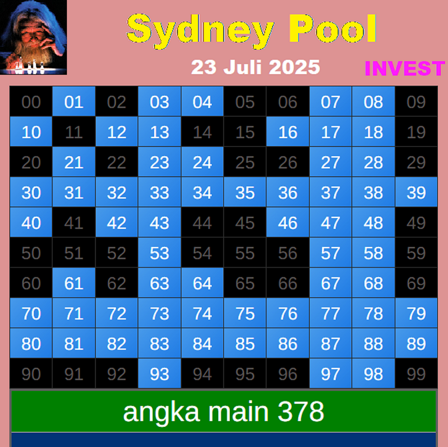 Prediksi Sydneypools Jumat, 03-10-2025 Merupakan Prediksi Otomatis yang menggabungkan Metode Kalender Togel Dengan LN Generator yang akurasi prediksinya sudah kita ketahui bersama. Jadi harap Maklum Jika kadang meleset Prediksi Sydneypools kita. Jadikan ini sebagai perbandingan saja dan tetap Utamakan karya sendiri