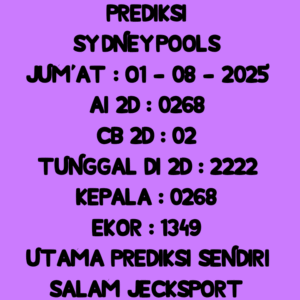 Prediksi Sydneypools Kamis, 02-10-2025 Merupakan Prediksi Otomatis yang menggabungkan Metode Kalender Togel Dengan LN Generator yang akurasi prediksinya sudah kita ketahui bersama. Jadi harap Maklum Jika kadang meleset Prediksi Sydneypools kita. Jadikan ini sebagai perbandingan saja dan tetap Utamakan karya sendiri