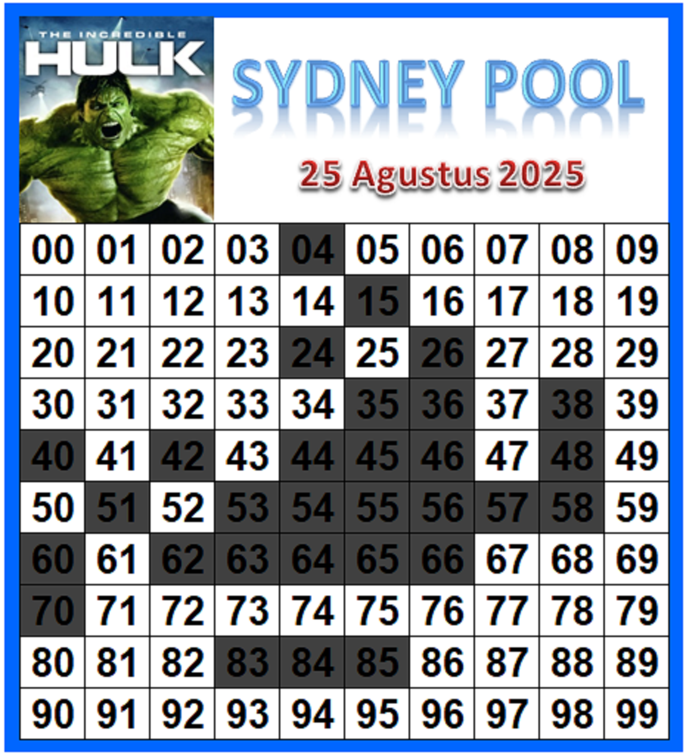 Prediksi Sydneypools Jumat, 03-10-2025 Merupakan Prediksi Otomatis yang menggabungkan Metode Kalender Togel Dengan LN Generator yang akurasi prediksinya sudah kita ketahui bersama. Jadi harap Maklum Jika kadang meleset Prediksi Sydneypools kita. Jadikan ini sebagai perbandingan saja dan tetap Utamakan karya sendiri
