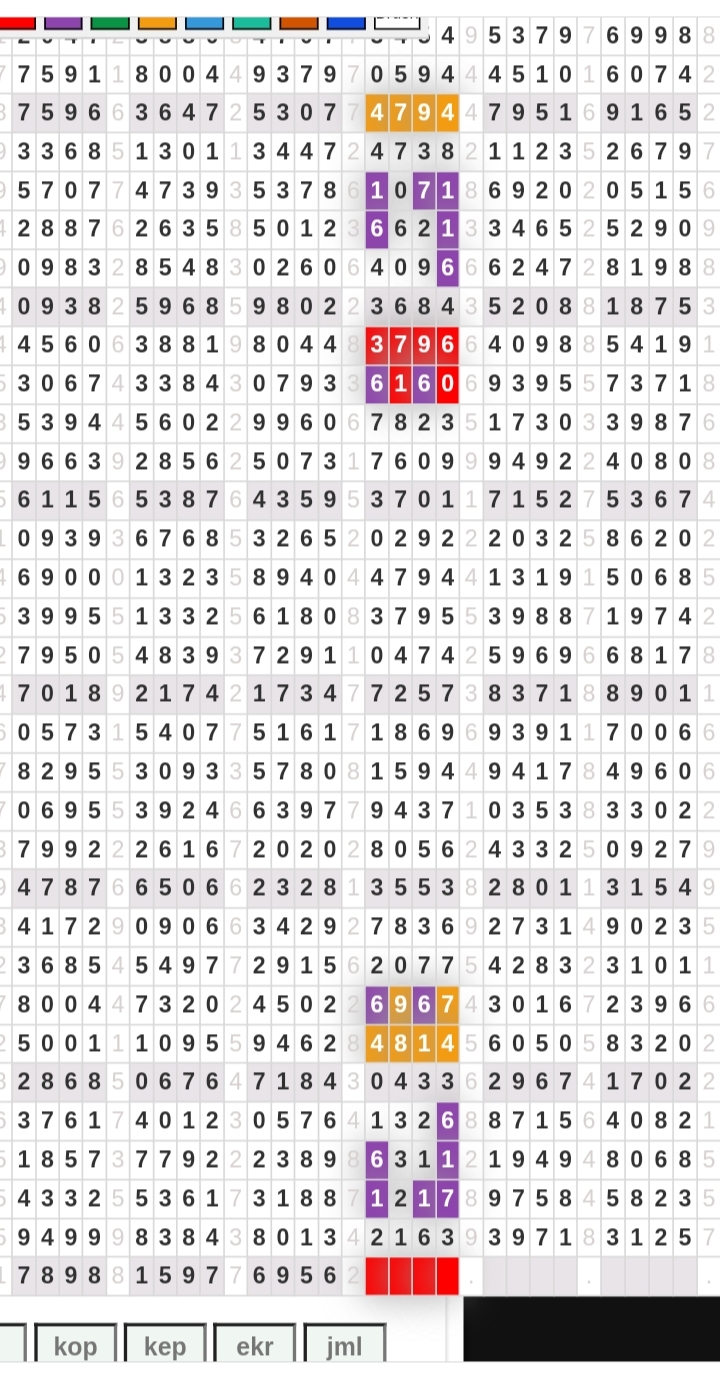Rumus Angka Mati berdasarkan kepala harian | 07 08 09 10 19 20 21 27 28 31 38 39 40 41 42 43 48 49 50 51 52 53 54 59 60 61 62 63 65 71 73 74 76 85 86 87 96 97 98 |