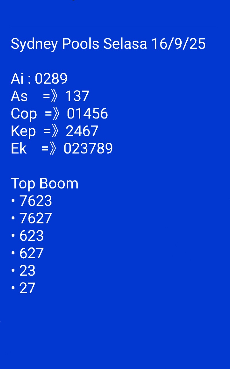 PREDIKSI SYDNEYPOOLSSELASA 16-SEPTEMBER-2025