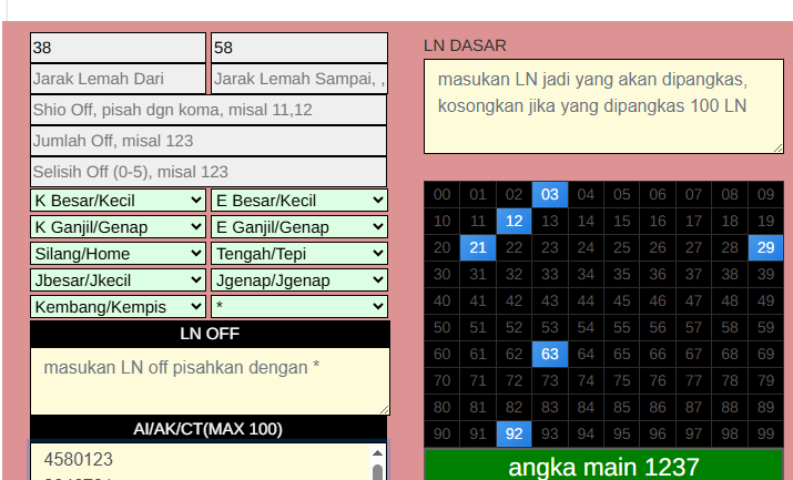 Rumus Angka Mati berdasarkan kepala harian | 07 08 09 10 18 19 20 21 29 31 32 40 42 43 49 50 51 53 60 61 62 63 64 65 71 72 73 74 75 76 82 83 84 85 87 93 95 96 98 |