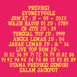 Prediksi Sydneypools Kamis, 02-10-2025 Merupakan Prediksi Otomatis yang menggabungkan Metode Kalender Togel Dengan LN Generator yang akurasi prediksinya sudah kita ketahui bersama. Jadi harap Maklum Jika kadang meleset Prediksi Sydneypools kita. Jadikan ini sebagai perbandingan saja dan tetap Utamakan karya sendiri