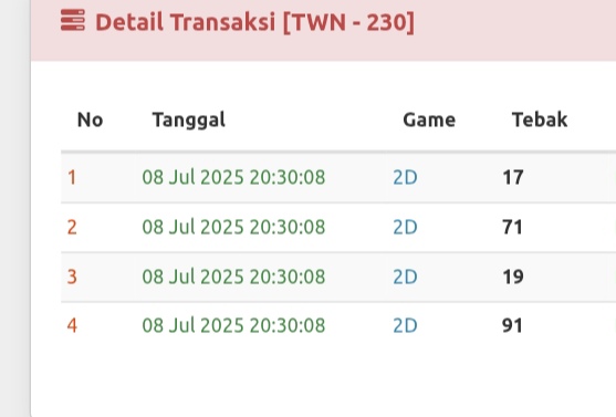 Prediksi Taiwan Selasa, 30-09-2025 Merupakan Prediksi Otomatis yang menggabungkan Metode Kalender Togel Dengan LN Generator yang akurasi prediksinya sudah kita ketahui bersama. Jadi harap Maklum Jika kadang meleset Prediksi Taiwan kita. Jadikan ini sebagai perbandingan saja dan tetap Utamakan karya sendiri