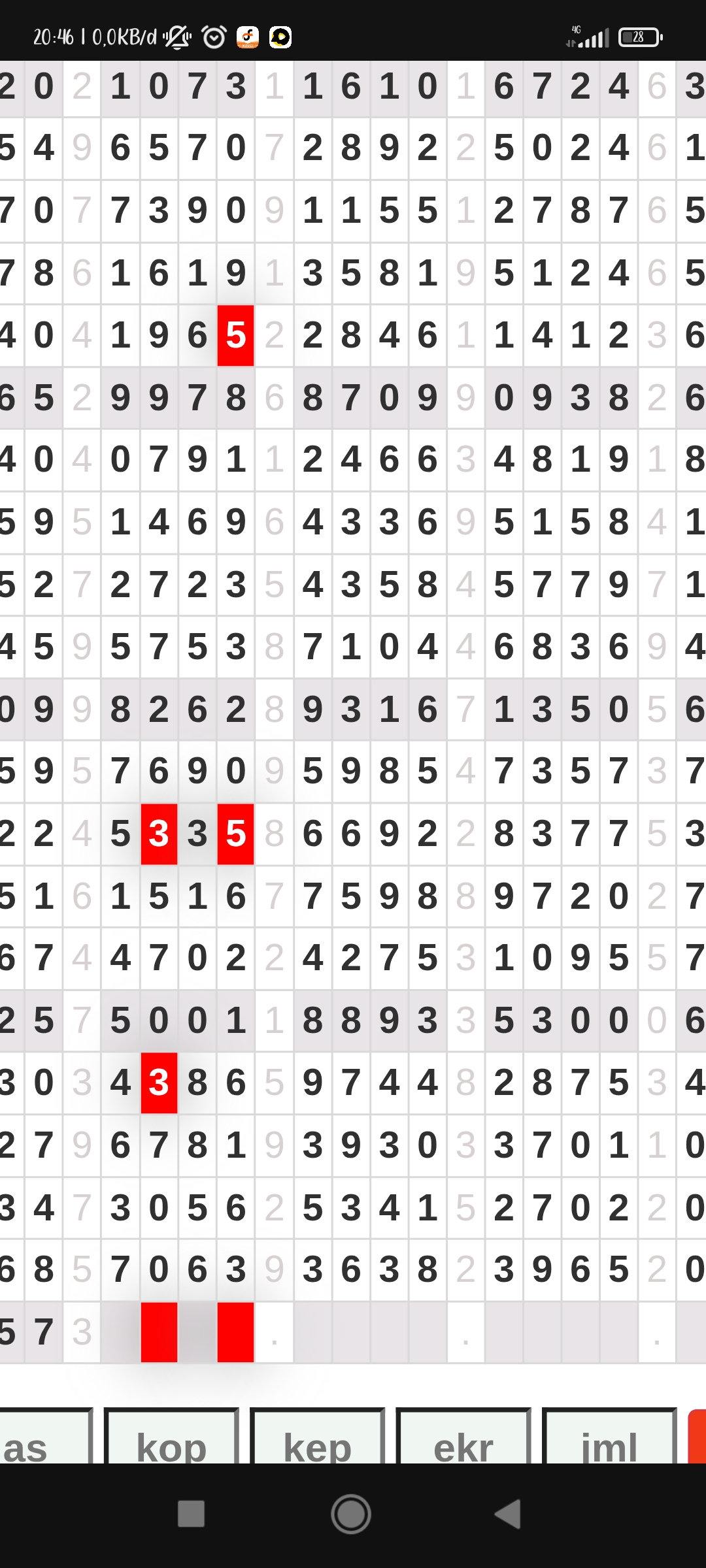 Rumus Angka Mati berdasarkan kepala harian | 07 08 09 10 19 20 21 27 28 31 38 39 40 41 42 43 48 49 50 51 52 53 54 59 60 61 62 63 65 71 73 74 76 85 86 87 96 97 98 |