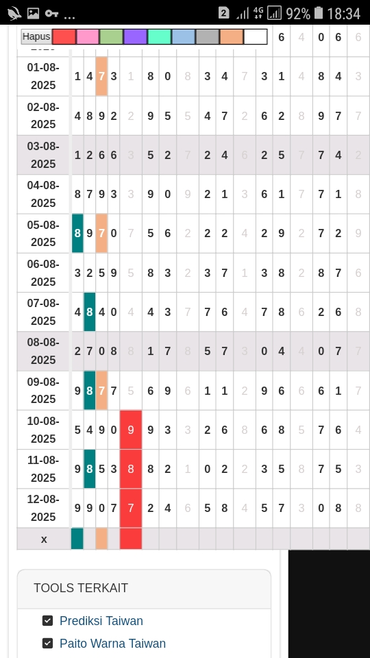 Prediksi Taiwan Rabu, 03-09-2025 Merupakan Prediksi Otomatis yang menggabungkan Metode Kalender Togel Dengan LN Generator yang akurasi prediksinya sudah kita ketahui bersama. Jadi harap Maklum Jika kadang meleset Prediksi Taiwan kita. Jadikan ini sebagai perbandingan saja dan tetap Utamakan karya sendiri