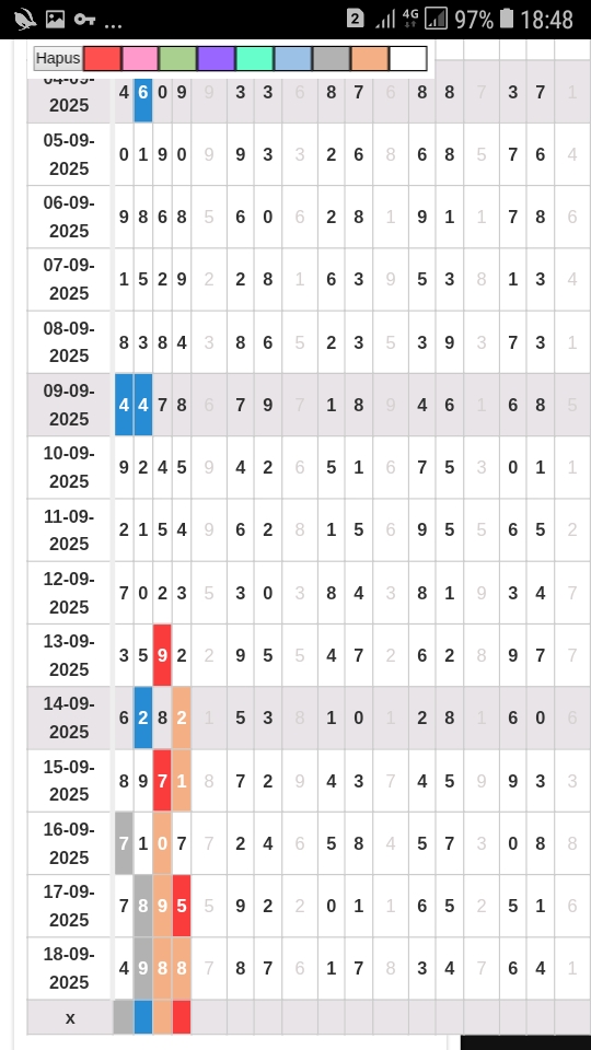 Rumus Angka Mati berdasarkan kepala harian | 05 06 08 09 16 17 19 20 21 26 27 28 29 30 31 32 37 38 39 40 41 43 48 49 51 52 54 59 63 64 65 74 75 76 85 86 87 97 98 |